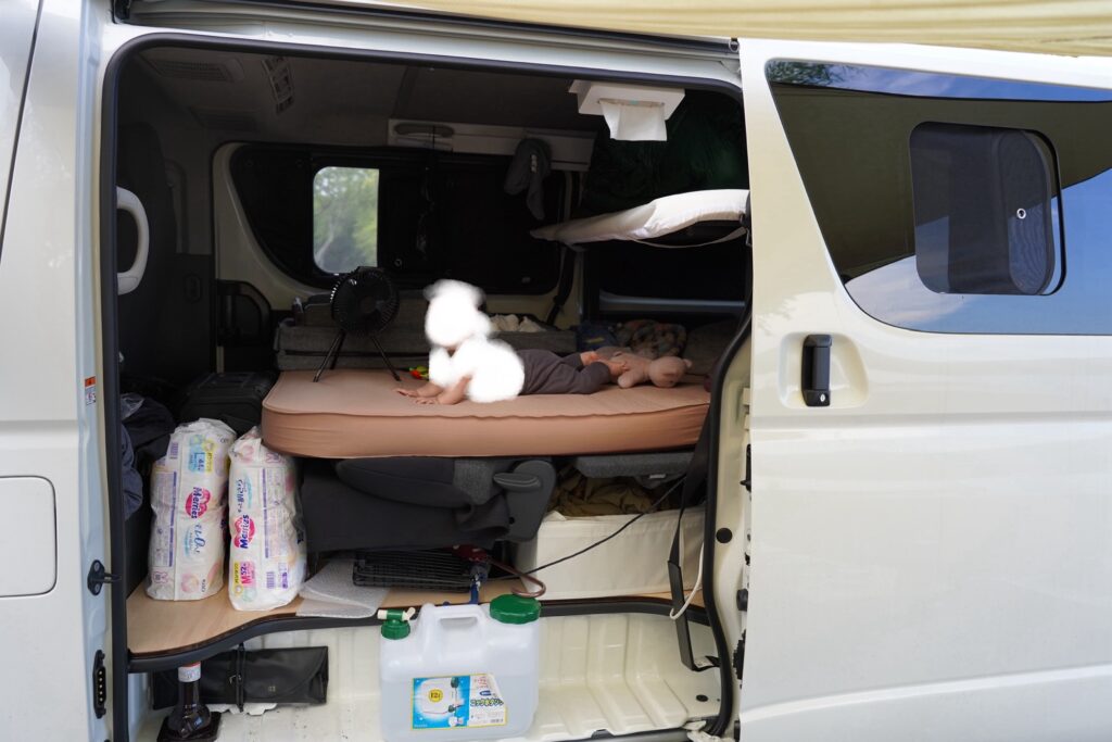 ハイエースで4人家族ファミリー車中泊を快適にする方法|DIY不要の2段ベッドキットで小さな子供でも安心のフルフラット空間