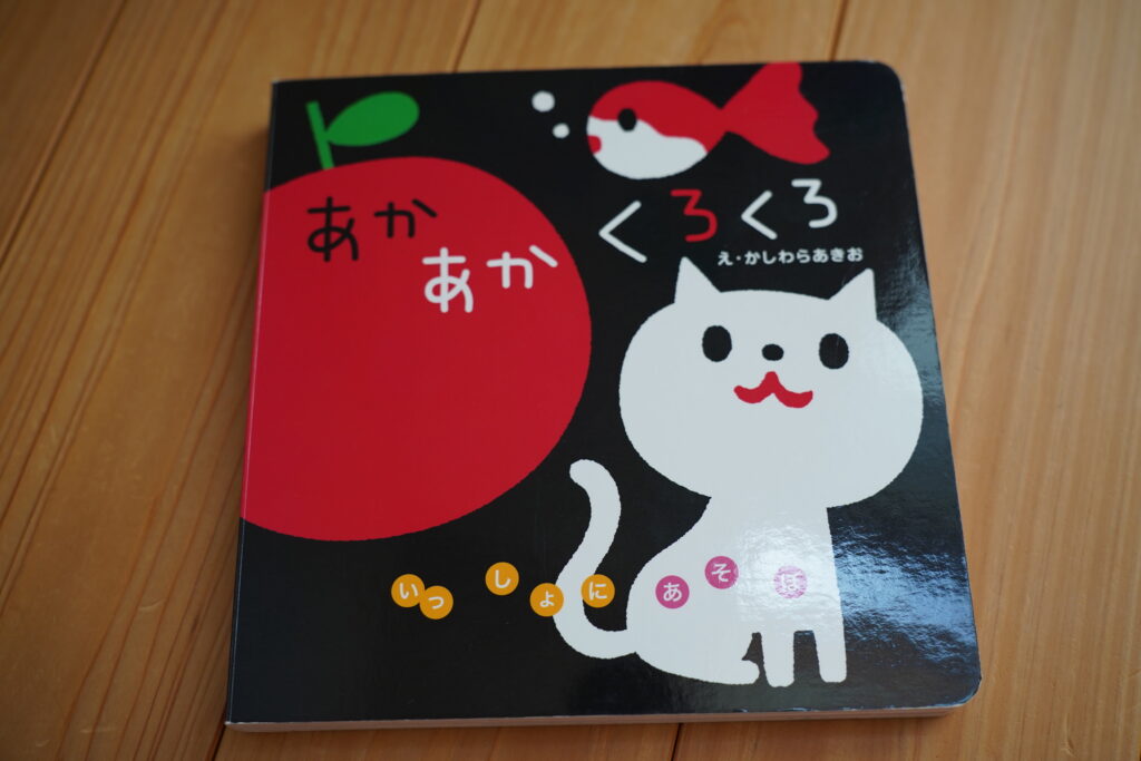 「赤だよ」「黒だよ」と色の違いを単純に繰り返し、読み聞かせることができます。