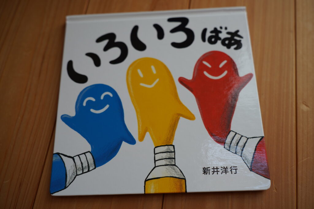 「いろいろばあ」は赤・黄・青といった3原色を用いて、絵の具チューブから、様々なかたちの絵の具に変化していきます。その変化の仕方が秀逸で、こどもが喜ぶかたちで表現されています。