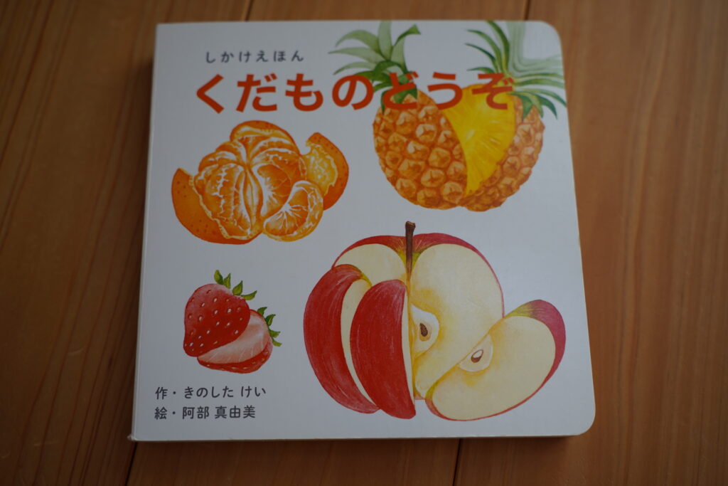 果物を食べる時の皮をめくる行為。お母さんが準備してくれる時に、じっと見ていたものが、なんと自分でも体験できる仕掛けになっている絵本です。