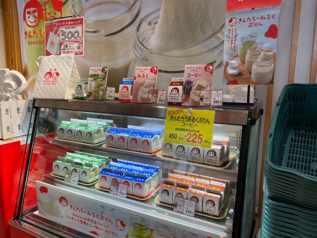 お店の中で気を惹かれたのが、きんたろーみるくの「プリン」。種類は「ミルク・コーヒー・足柄茶」の3つのラインナップです。可愛らしいロゴの牛乳パックがなんとも愛らしい。こどもにも人気がありそうですね。