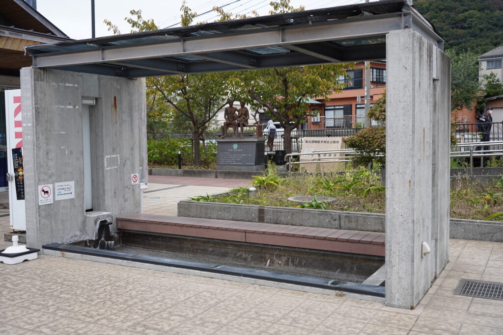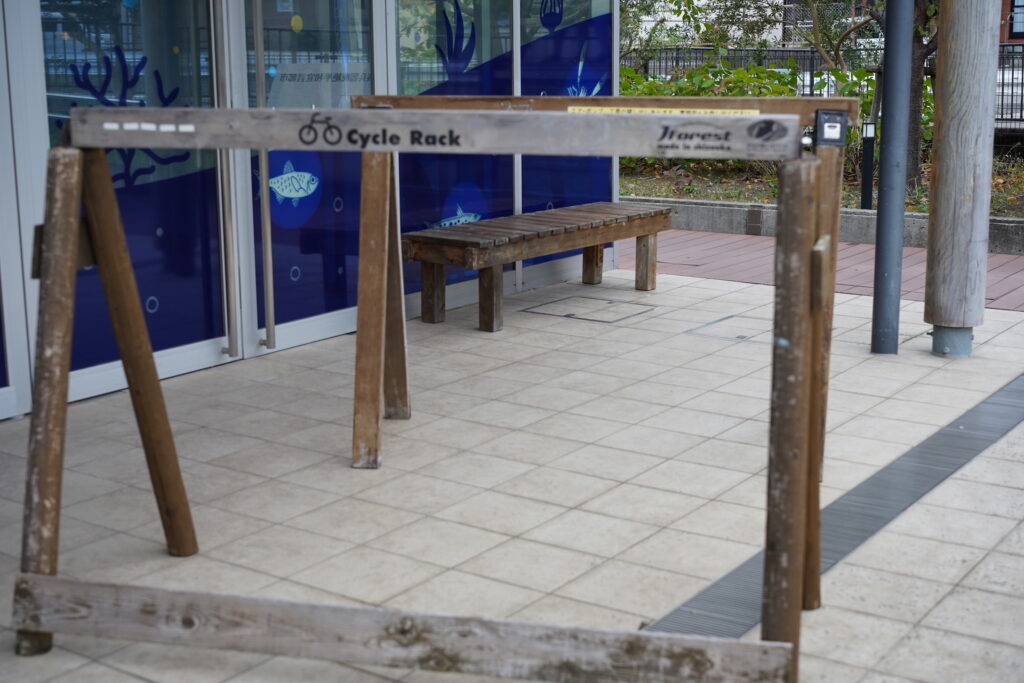 サイクルラックが置いてあるなと思い、伊豆を自転車で旅する人にとっては最高の休憩スポット。足湯で疲れた足を癒しながら、自転車をすぐそばに置けます。