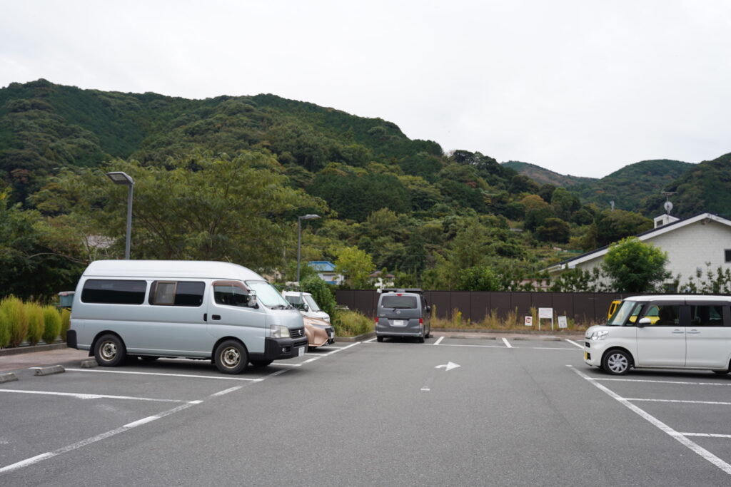 駐車場は広くはないですが、車中泊しようという車も、ちらほらいます。(写真は夕暮れ過ぎて暗くなる頃です)